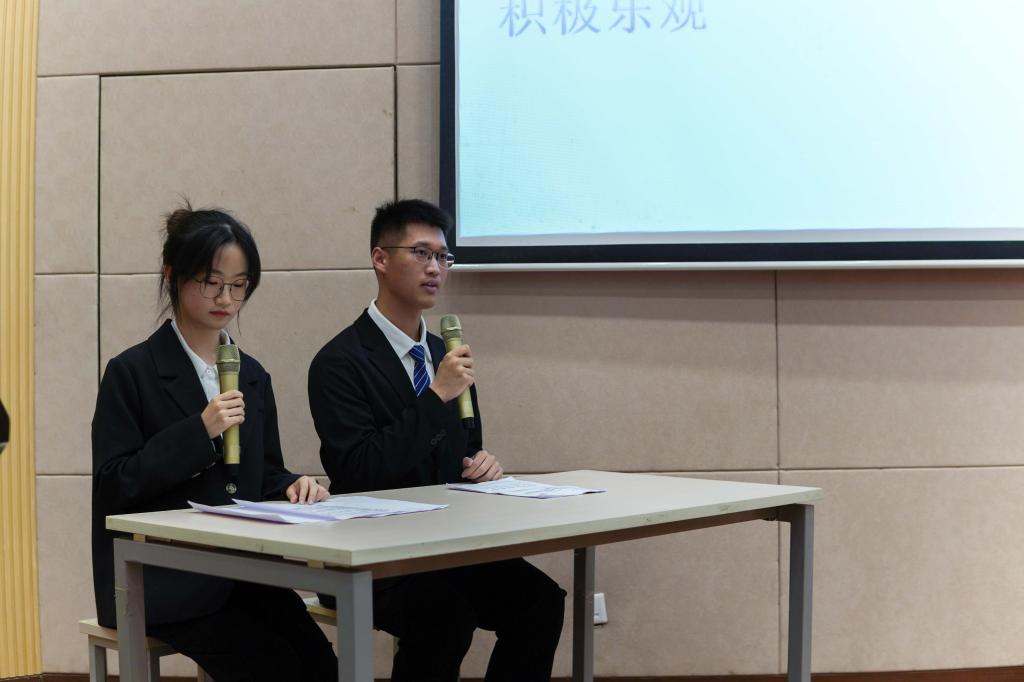 随后,张华和陈祎针对本次答辩会进行了总结交流。他们首先肯定了候选班级的班级建设措施与成效,对班主任老师和同学们在此过程中的辛勤付出表示由衷的感谢。张书记更是结合自己学生时期多年担任班长的经历分享了自己对于班级体建设的建议:第一,团结和谐是优秀班集体的基础,应遵循“一个都不能少”的原则,全体同学互帮互助、共同发展;第二,学生干部应严于律己,发挥好榜样作用,用集体的创造性思维构建一个具有良好班风、能持续发展的班集体。第三,优秀的班集体必然是学习型班集体,而优秀的学习成绩不是凭空得来的,同学们应以勤奋练就真才实学,在专业学习领域不断探索、钻研,提升综合素质。