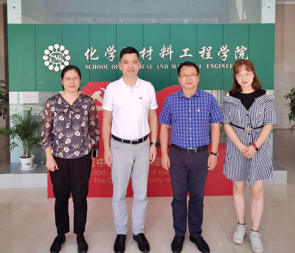 党委书记张华、专职组织员缪可嘉赴化学与材料工程学院党委调研党建工作。化工学院党委书记潘庆伟、专职组织员陆雪英接待并进行交流。