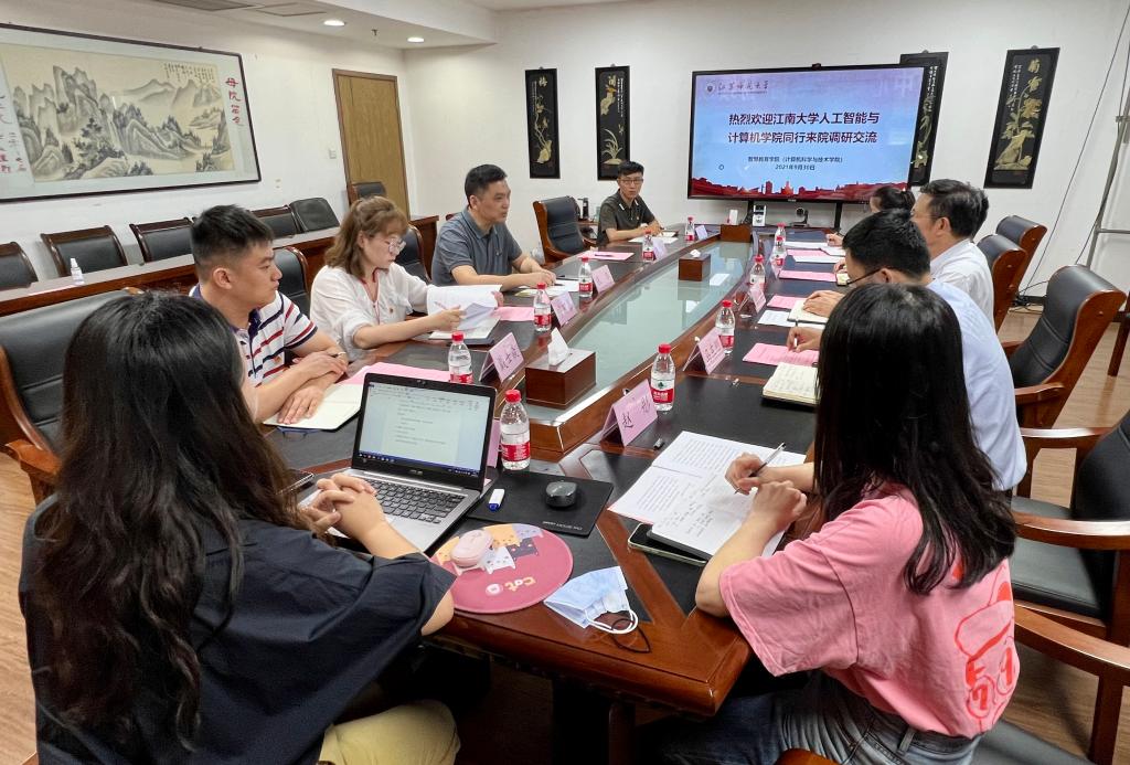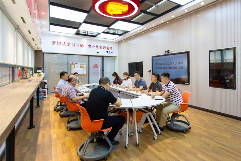 下午,学院一行来到了智慧教育学院(计算机学院),党委书记张斌介绍了学院党组织的基本情况和党建工作的经验、做法、特点等。智慧教育学院在党建工作开展过程中形成以理论学习为引领提高党建水平,以支部建设为核心全面提升党建质量,以党建项目为抓手努力深化业务融合,以党建争先为动力彰显党建特色和以制度建设为根本增强党建保障的工作特色和成效。之后,党委副书记马东刚分享了学院的学生党建品牌活动-“智慧青年思享汇”。“智慧青年思享汇”是学院党委指导学生党支部打造的青年学生党员表达思想、分享实践经验、汇聚发展合力的平台,学生党员全覆盖,广泛开展参与式学习,创新开拓了党员教育的渠道。