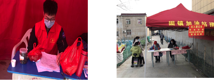 学院19级学子徐萍报名参加了防疫志愿工作,每天在社区门口的卡点处登记进出人员的详细信息,对非本小区和外来人口进行劝退。