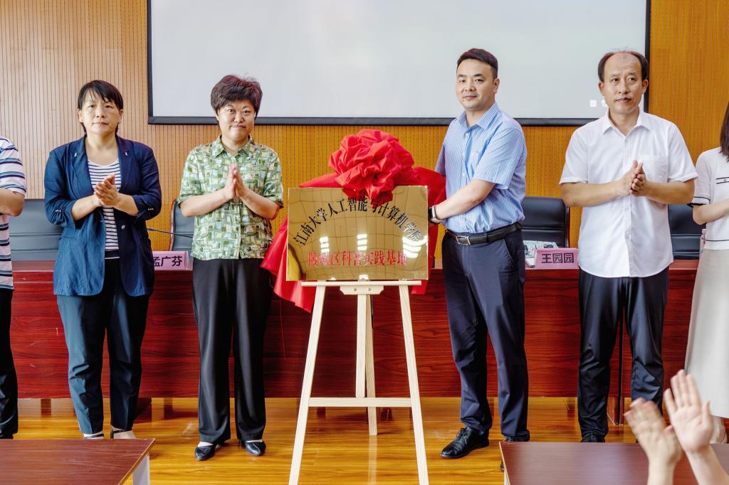 孟广芬代表陵城区对实践团师生的到访表示热烈欢迎,她希望双方以本次挂牌仪式为契机,持续加强教育、科技、人才等领域合作,逐步打造“校地联手、共建共享、合作发展”的社会实践教育基地品牌,不断推动少儿科普教育取得实效。钱鹏江代表学院与德州市陵城区签订共建大学生社会实践基地协议书,并为江南大学陵城区少儿编程科普实践基地揭牌;王园园向孟广芬赠送由新澳门六合彩论坛