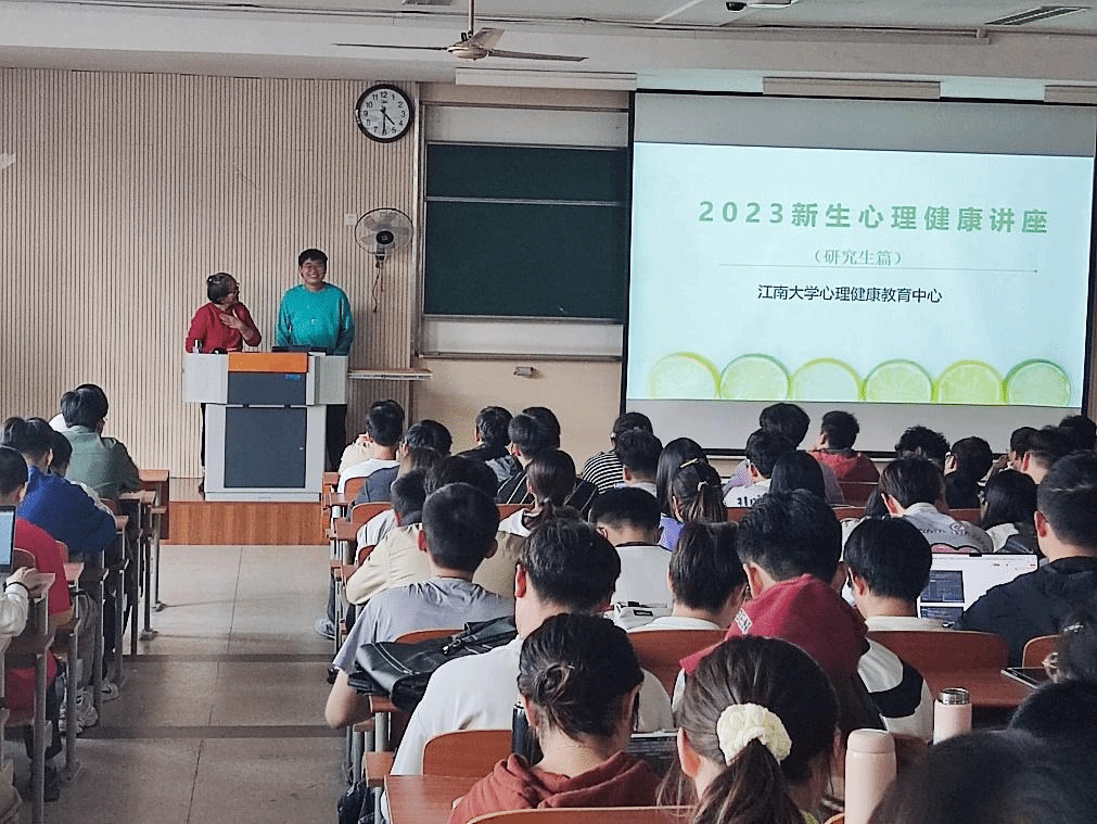 邀请国家二级心理咨询师、江南大学校医院副主任医师沈力晔于10月11和12日分别为2023级本科和研究生新生开展题为“江南一程,欣喜有你”大学生两性交往与恋爱漫谈心理健康教育讲座。
