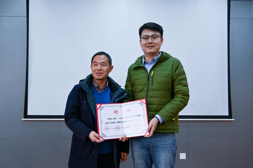 会后,方伟为甘霖颁发了江苏省产业教授聘书。他指出,学院长期以来与国家超级计算无锡中心保持着紧密的合作,共同申建了江苏省先进计算与控制产教融合重点基地、江苏省产教融合品牌专业、无锡市先进计算与新兴软件产业学院。他希望以产业教授为纽带,在前期的合作基础上,充分发挥高精尖科技人才的技术优势,带动学院在高性能计算领域实现技术突破,推动符合社会和行业发展需要的高质量超算人才的培养。
