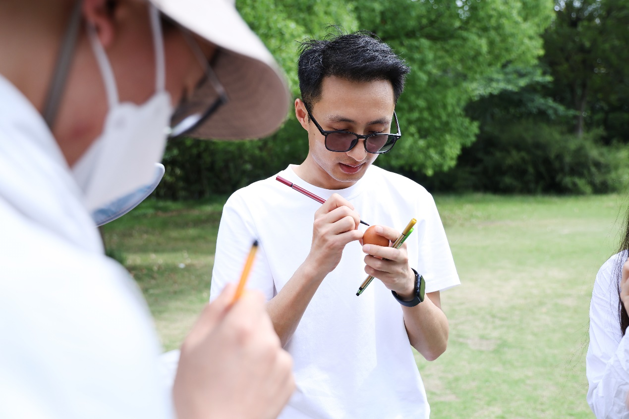 活动正式开始后,每位老师都领到一个鸡蛋,并在上面写下自己生命中最有价值的东西:健康、亲情、事业等等。这些承载着美好愿望的鸡蛋,成为了老师们闯关的珍贵“宝物”。