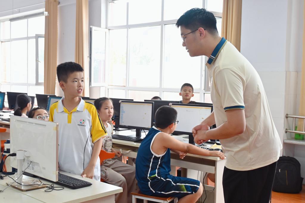 于2023年6月组建“AI启程”少儿编程科普实践团,旨在信息科技教育欠发达地区科普人工智能知识,开展少儿编程课程,助力信息科技课程稳健起步发展,并于2023年7月与山东省德州市陵城区教体局共建大学生社会实践基地。今年暑期,实践团再次奔赴齐鲁大地,第二年走进陵城区第四实验小学,为暑期托管班200余名学生带来为期5天的少儿编程科普与实践课程。