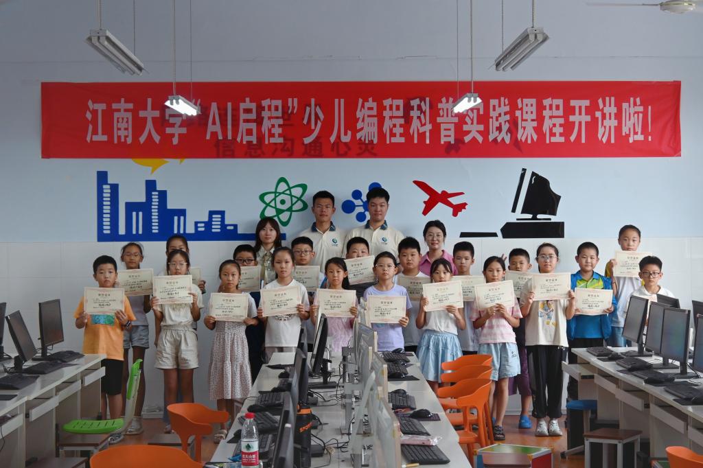 用编程助力素质教育,以代码照亮精彩童年。从烟雨江南到齐鲁大地,“AI启程”少儿编程科普实践团从未停下前进的脚步。未来,实践团将继续结合专业所学,助力地方科学教育示范校建设,同时也期待有更多的青年学子能够加入到行列中来,将少儿编程的火种播撒到更多地区,努力让学生在青少年时期树立科技报国的宏伟志向,为教育强国、科技强国、人才强国贡献新时代智能学子的智慧与力量。