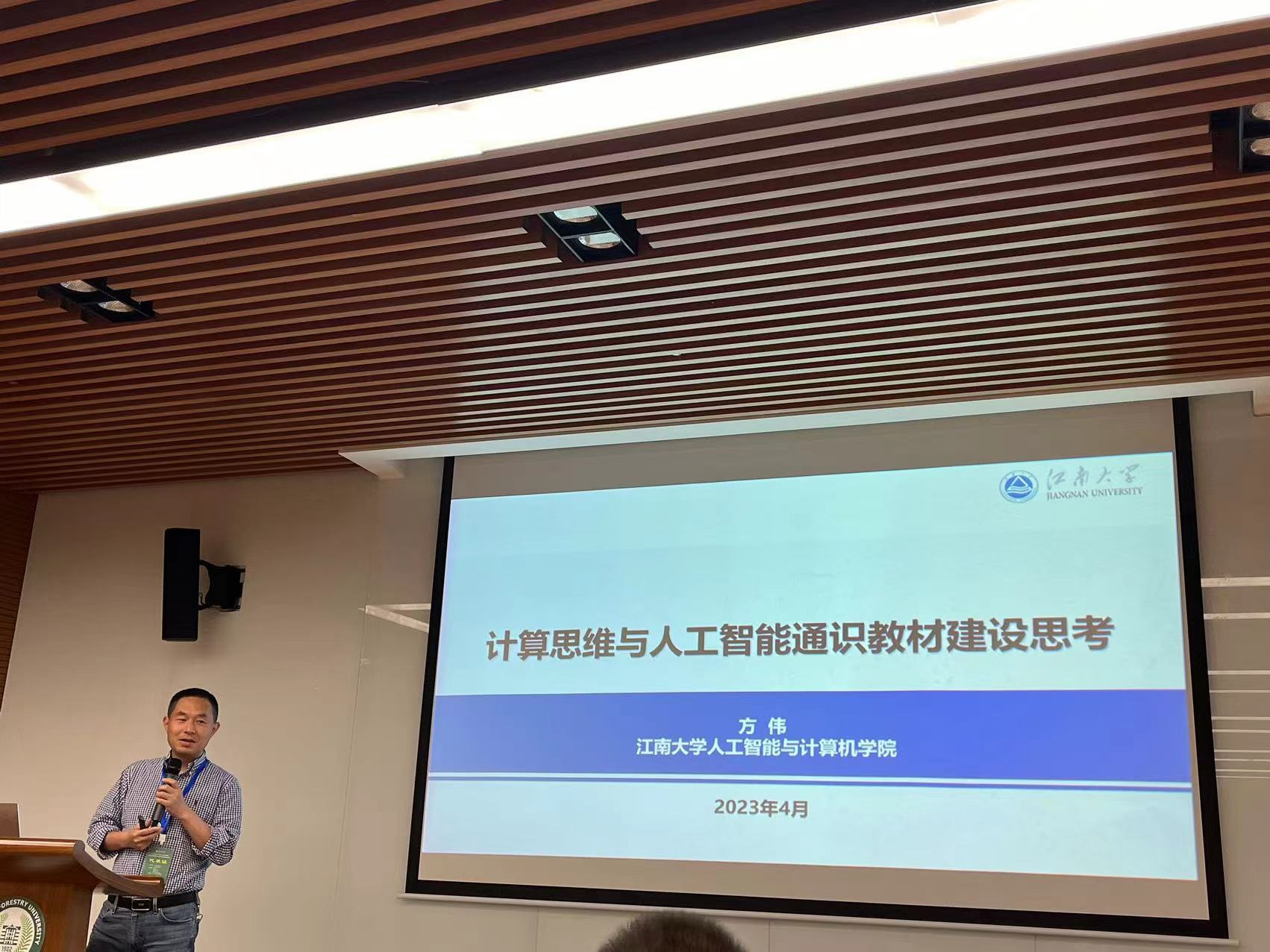 的学科情况、科研平台、专业建设与培养平台,以及江南大学AI+,然后介绍了人工智能通识课开展现状、建设目标以教材成果导向,内容由基础到前沿,贴合时代发展,匹配工程实践教学,通俗易懂,促进跨学科交流。方伟院长表示建成的教材将具有教材内容丰富全面、知识图谱结构清晰易懂,个性化学习路径和推荐,知识图谱在线平台,在线实践资源提供等特色。
