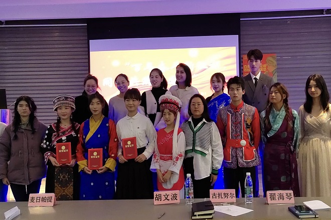 在主持人对比赛评委、比赛流程及比赛规则进行了介绍后,本次比赛正式开始。来自汉族、维吾尔族、藏族、蒙古族、哈萨克族、白族、土家族等10名晋级决赛的少数民族同学身着民族服饰,围绕“民族团结一家亲,同心共筑中国梦”的主题,弘扬民族团结,铸牢中华民族共同体意识,加强各民族交往交流交融,促进各民族像石榴籽一样紧紧抱在一起,将共同团结奋斗、共同繁荣发展的精神,结合自身经历和身边的故事展现给了现场的每一个人,选手们各显神通、寓情于声、风格各异,彰显了当代大学生积极向上的精神风貌。精彩的演讲不断博得台下同学们的掌声和喝彩声,现场气氛十分活跃。评委们分别从主题内容、语言表达、即兴演讲和综合印象等方面为选手们进行了打分。经过激烈的角逐,最终来自商学院国贸2103班木阳同学荣获一等奖,她赛后激动的表示:“我们是党百年目标的见证者,也是国百年目标的亲历者,生逢最好的时代,我们怎能自甘落寞?欲知大道,必先知史。这次比赛是思想的碰撞和交流,它更是我们共同向历史寻经验、求思路、找方法,读懂百年党史的精神内涵的有效途径。”